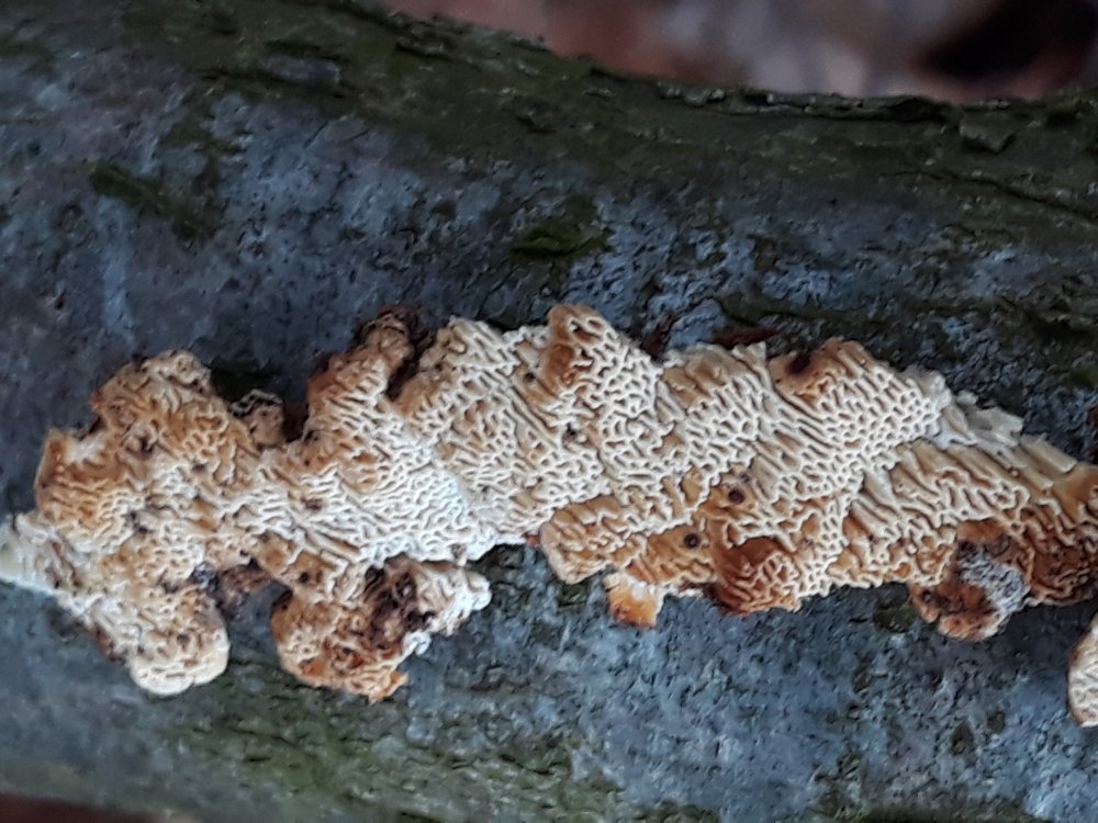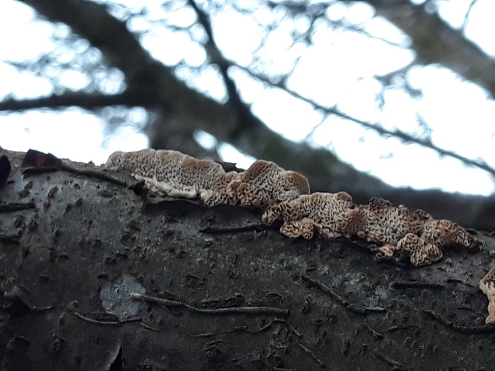 Anfang des Jahres hab ich an einer morschen Haselnuss bei einem Spielplatz folgendes Schwammerl gefunden.