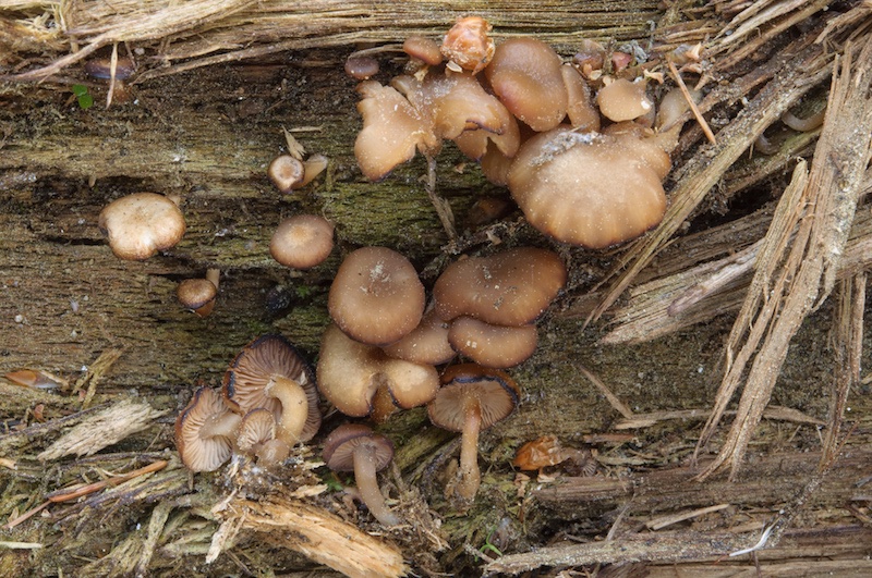 vor ein paar Tagen ist Anna mit Trichocybe puberula ein toller Fund gelungen. Dank ihrer Beschreibung des Standortes konnte ich die Vermutung auch vor Ort bestätigen. Durch das Wachstum auf Holz, den Mehlgeruch und die teilweise bereiften, befaserten oder fein spitzschuppigen Hüte kann man die Art eigentlich schon makroskopisch erkennen. In der Ö-Datenbank ist erst ein einziger Fund aus dem Dobrawald eingetragen.