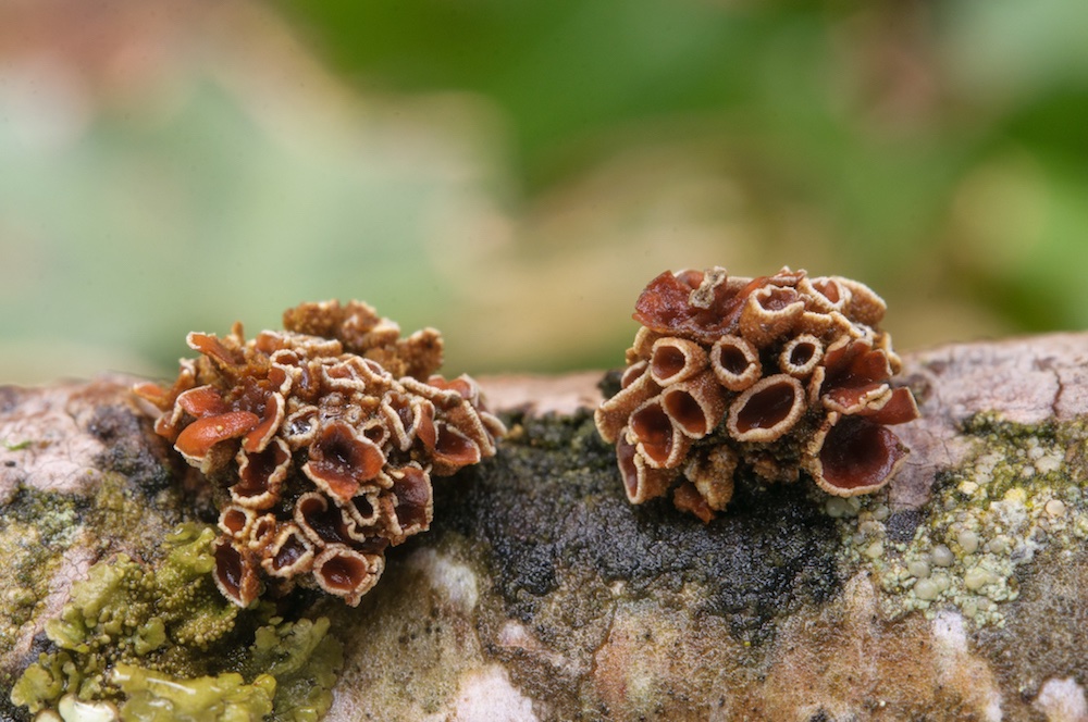Encoelia fimbriata: Auf Hydnoporia corrugata auf liegendem Laubholz-Ast. Ohne Einträge in der Datenbank.